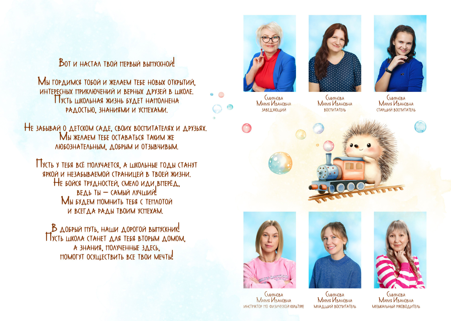 - разворот с воспитателями и их пожеланием